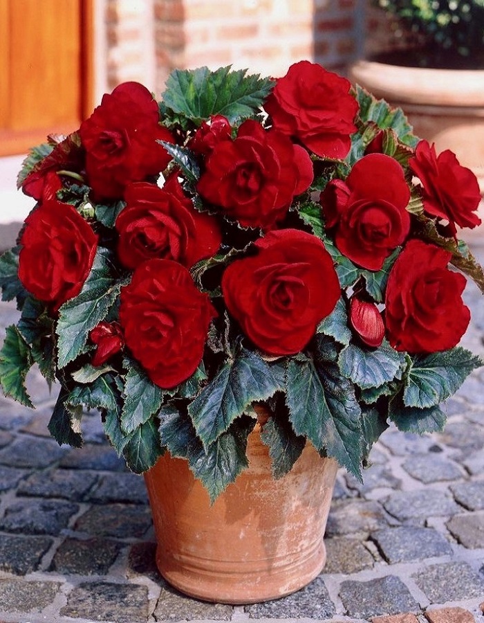 Бегония махровая Скарлет – клубневое растение высотой 25-35см. Красивы ее зеленые сердцеобразные листья с неровно зубчатыми краями, прекрасны и махровые ярко алые цветки, похожие на розочки, диаметром до 11см.