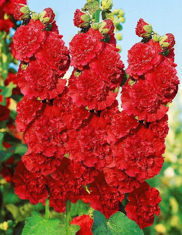 Крупная ,яркая. Многолетнее растение, выращиваемое как двухлетнее, высотой до 2,5 м. Соцветия крупные, кистевидные. Цветки махровые, диаметром 8-12 см. Растение светолюбивое и засухоустойчивое. Используют для посадки в группах, миксбордерах, для декорирования изгородей и на срезку. На зиму желательно укрывать лапником.