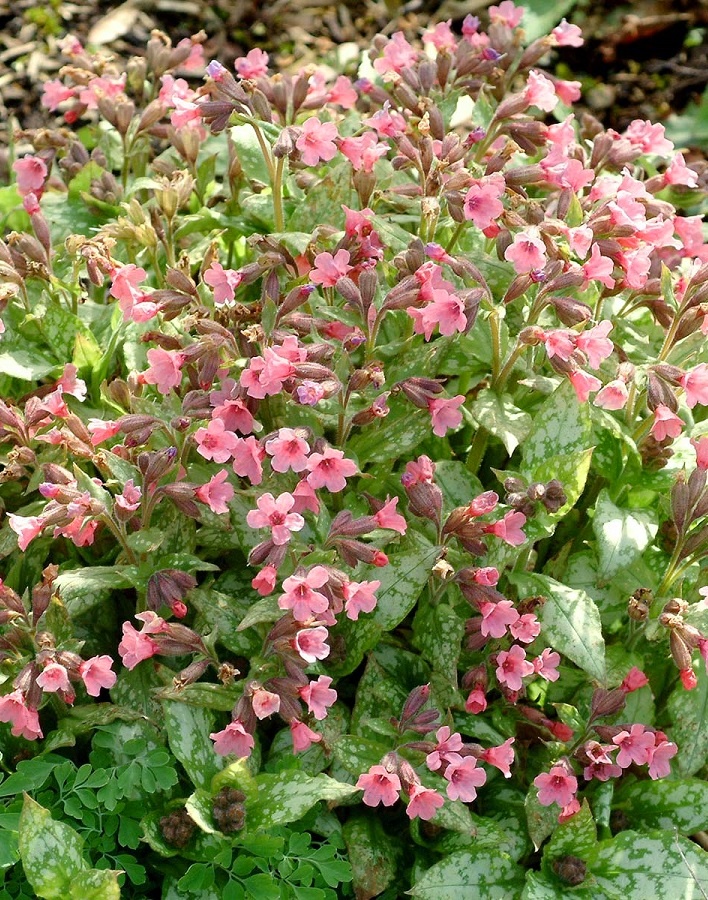 ПрименениеЧасто используют в теневых садах. Хорошо чувствует себя под деревьями и кустарниками. Соседствуют с папоротниками, хостами и многими кустарниками.Хорошо смотрится около бордюров, вдоль дорожки.Дерево (куст)Небольшое травянистое растение, которое достигает 30 см в высоту и 40 см в ширину.ЛистьяЛистья ярко-зеленые с серебристо-серыми пятнами.Цветы (соцветия)Цветки светло-розовые, со временем приобретают голубоватый оттенок. Восхитительно красивый весенний первоцвет, покрытый множеством цветов-колокольчиков разных оттенков, от розовых до фиолетовых. Цветет в апреле-мае.ЗимостойкостьЗимостойкость высокая, до -35°C.Возраст саженца1 год