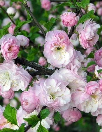ПрименениеМиндаль сажают в групповые и смешанные посадки, живые изгороди или используют в качестве солитера.КустКуст или небольшое дерево, высотой 2-3(5) м.ЛистьяЛистья очередные, опушенные, широкоэллиптические, до 6 см длиной, по краю пильчатые, с клиновидным основанием и заостренной верхушкой, которая бывает иногда трехлопастной.Цветы/соцветияЦветки крупные, махровые, нежно-розовые в начале цветения, телесные — в конце.Плод — округлая костянка, до 1 см, с сухим, бархатистым околоплодником, подсыхающим до опадения, со слаборельефной, плохо отделяющейся косточкой. Плоды завязывает, но чаще всего они опадают недозрелыми. Цветение: Пышное цветение начинается до распускания листьев в конце апреля, в течение 2,5 недель.ЗимостойкостьЗимостойкость высокая, до -34 °C.Возраст саженца1 годУсловия выращиванияПредпочитает солнце.Почва: не требовательна к почвам, но предпочитает свежие плодородные почвы. Легко переносит пересадку, устойчива к засухе, вредителям и болезням.Деревце морозоустойчивое, хорошо переносит стабильно низкие температуры.