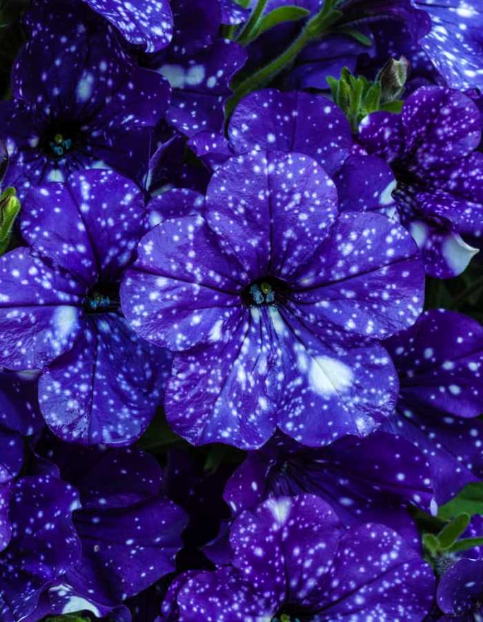Уникальный гибрид новейшей серии «Дот Стар F1». Эту серию отличает от других наличие белых крапинок и пятен на основной окраске. При жаркой или изменчивой погоде меняется форма, частотность и интенсивность белых рисунков на лепестках так, что каждый цветок является неповторимым оригиналом. Растения высотой 30-35 см, сильно ветвятся и обильно цветут. Цветки темно-фиолетовые с белыми крапинками и пятнышками, диаметром 6-7 см. Цветет обильно с июня до заморозков. Растение свето- и теплолюбивое, засухоустойчивое. Отличается устойчивостью к неблагоприятным погодным условиям. Быстро восстанавливает цветение после сильного дождя. Используют для клумб, рабаток, балконных ящиков и контейнеров.