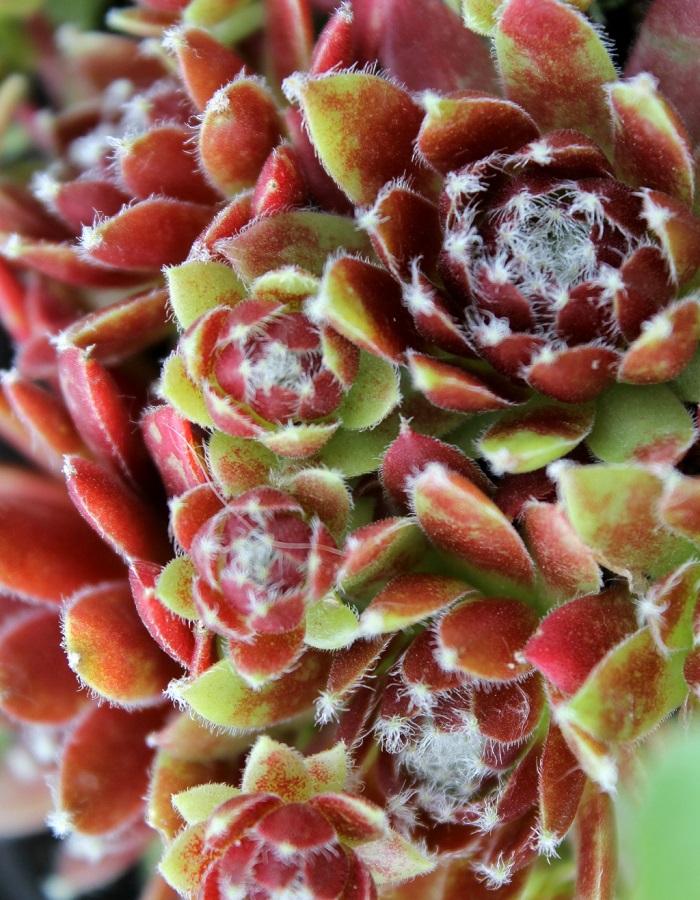 ПрименениеСуккулентное многолетнее растение. Молодило кровельное - эффектный низкорослый, вечнозеленый, почвопокровный многолетник. Молодило используют при оформлении альпийских горок и рокариев. Часто высаживают в горшках и контейнерах, особенно декоративно смотрятся композиции с разными суккулентами.Дерево (куст)Молодило гибридное Хамелеон - многолетнее травянисто растение, которое образует плотные куртины из одиночных розеток с листьями. Розетки плотные, округлые, напоминают шишки. Корни у каждой из них отдельные, что сильно упрoщает размножение молодила. Высота 5-6 см, листья зеленые с пурпурным оттенком, образуют розетки, диаметром достигают 20 см.ЛистьяЛистовые пластины мясистые, плотные, гладкие, аккуратные, заостренные, довольно узкие. Окрас ярко-красно-коричневый. Листочки удлиненные темно-красные, зеленые у основания с легкой паутинкой.Цветы (соцветия)Во время цветения из некоторых розеток вырастают толстые, покрытые листьями стебли, венчающиеся мелкими цветками. Диаметр - 10-15 сантиметров, высота с цветоносом 15 - 20 сантиметров. Период цветение приходится на июль - август. Цветки небольшие, розовые.ЗимостойкостьЗимостойкость высокая, до -34° сВозраст саженца1 годУсловия выращиванияСветолюбиво, предпочитает сухие, бедные, песчаные почвы, нейтральные или щелочные. На плодородных почвах менее жизнеспособно. Посадка в тени возможна, но в этом случае суккуленты растут хуже, а их листья становятся бледнее.