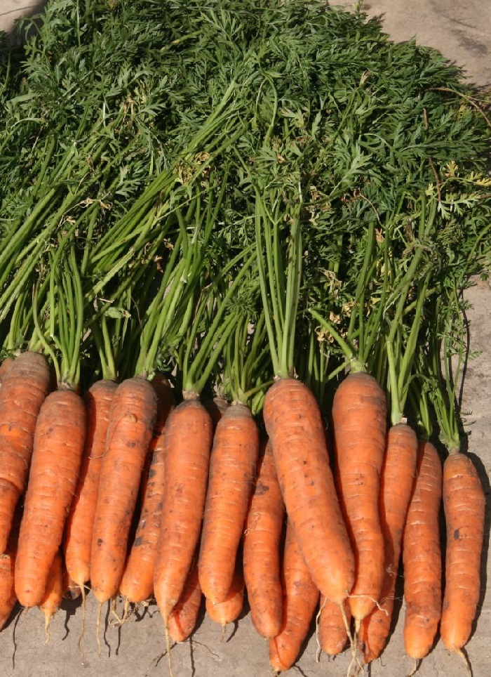 Урожайный среднеспелый (105-110 дней) гибрид универсального использования. Корнеплоды цилиндрические, тупоконечные, полностью погружены в почву, интенсивно оранжевого цвета без зелёных «плечиков», длиной до 23см, массой 200-210г. Мякоть нежная, сочная, сладкая, с высоким содержанием каротина. Ценность гибрида: высокая урожайность, холодостойкость, хорошая лёжкость, отличные вкусовые качества. Превосходный вкус, сочность и сладость корнеплодов делают её идеальной для питания детей, изготовления соков и пюре. При раннем посеве можно использовать для получения пучковой продукции.