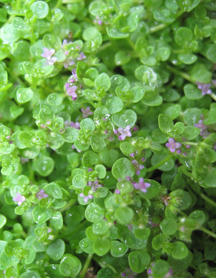 Многолетнее почвопокровное растение, распространяясь в ширину, образует из листьев плотный зеленый ковер, устойчивый к неактивному вытаптыванию, высотой до 10см. Крошечные цветочки бледно-лилового оттенка цветут в течение всего лета. Круглые, ярко-зеленые листья, всего 2-7мм в длину, расположены очень близко друг к другу, с сильным мятным ароматом, который появляется, если их растереть в руках. Используют как в качестве основного почвенного покрытия, так и на альпийских горках, ступеньках, клумбах, подвесных горшках.