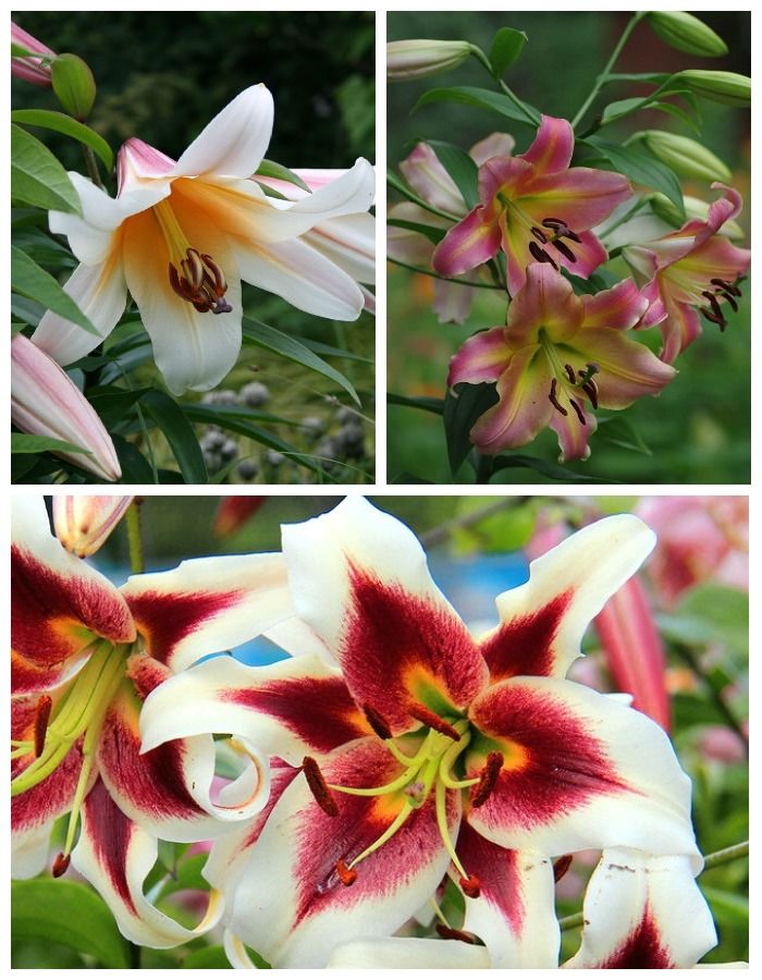 Цветонос этого гибрида невероятно крепкий, а вот тип цветка разнится от кубовидного до поникшего. Максимальное количество соцветий таких лилий велико – до 40 штук на одном стебле. Один стебель может выглядеть как полноценный букет. Благодаря эффектному внешнему виду, роскошному аромату, высоте стеблей гибриды ОТ весьма востребованы. Микс эффектных, ярких, необычных лилий.