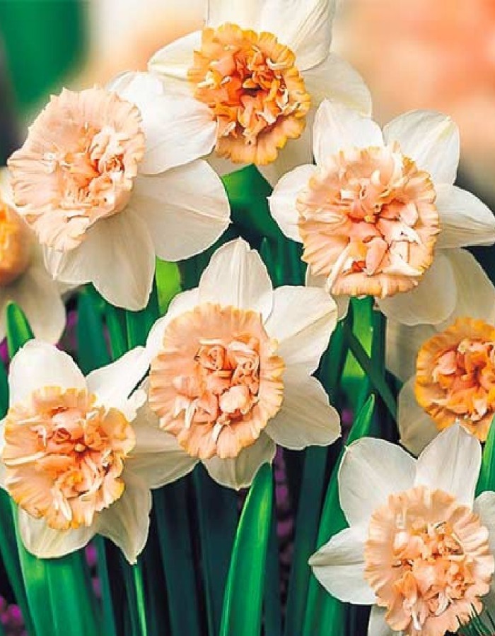 Нарцисс махровый Рози Клауд — многолетнее луковичное растение высотой 35–40 см с изящными цветками диаметром 8–10 см. Нарцисс Рози Клауд выделяется махровыми белоснежными цветками с лососево-розовой короной. От цветков исходит приятный нежный аромат, благоухающий по саду. Очень широко используется в садовом дизайне на клумбах в группах с другими многолетниками и отдельными посадками.