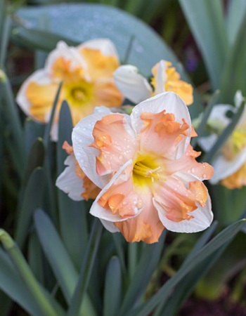 Нарцисс «Рэйнбоу оф Колорс». Высота 45 см. Диаметр 10 см. Цвет зеленовато-белый с персиковой короной.