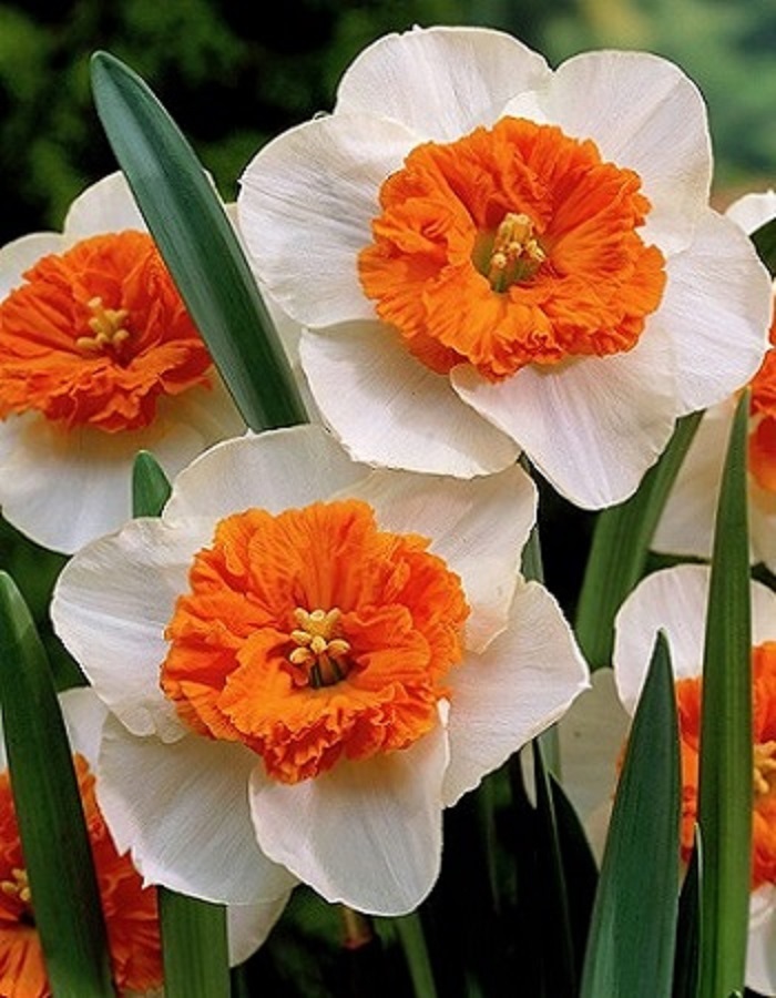 Нарцисс «Белла Виста». Высота 30-35 см. Диаметр 8-10 см. Цвет белый с оранжевым.