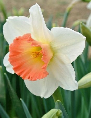 Нарцисс Пинк Шарм — многолетнее луковичное растение высотой 35–40 см с изящными цветками диаметром 8–10 см. Нарцисс Пинк Шарм выделяется белоснежными наружными лепестками, а также абрикосово-розовой коронкой с волнистыми краями. От цветков исходит приятный нежный аромат, благоухающий по саду. Очень широко используется в садовом дизайне на клумбах в группах с другими многолетниками и отдельными посадками.Предпочитают влажную почву и при условии организации дренажа не боятся избыточной влаги или талых вод в осенне-весенний период, отлично развиваются на тяжелых и суглинистых почвах.В грунт высаживать в сентябре на глубину 10–15 см, в зависимости от размера луковицы, выдерживая расстояние 10–20 см.Уход заключается в своевременных поливах, рыхлении, подкормках, прополке сорняков.Первую подкормку проводить весной по всходам, вторую — в фазе выхода цветоноса, третью — во время полной бутонизации, четвертую — во время цветения.Выкапывать в сухую погоду, предварительно прекратив поливы на участке.