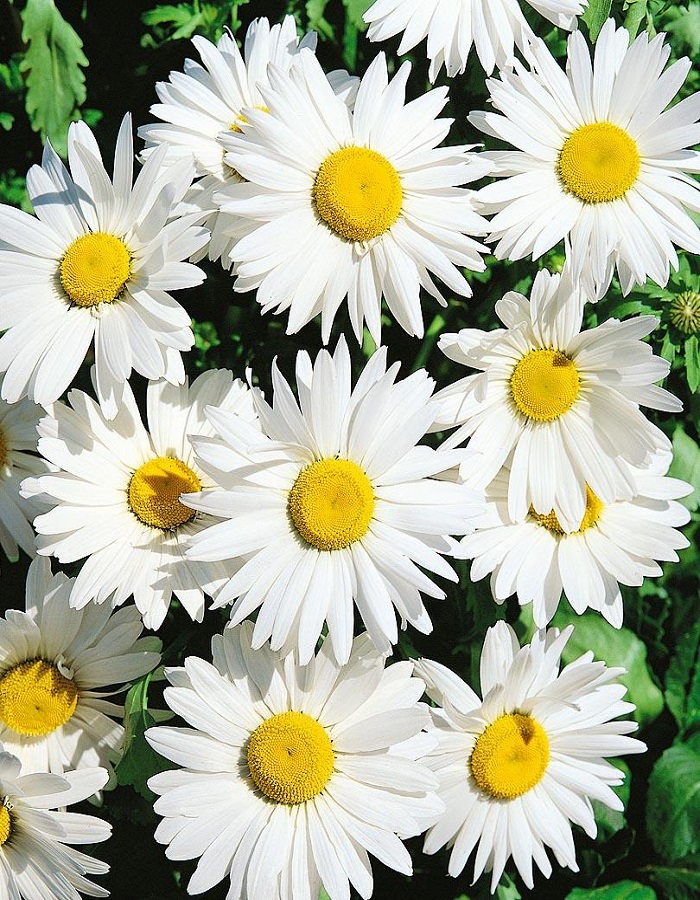 Крупноцветковый. Многолетнее растение с множеством ветвистых стеблей высотой до 100см. Соцветия – шикарные белоснежные корзинки и желтым центром, диаметром 10-12см. Цвести начинает на второй год с июля по сентябрь. Предпочитает солнечные места. Используют в групповых посадках на газоне, на фоне декоративных кустарников и для срезки.
