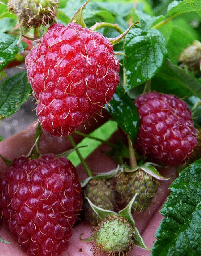 ПрименениеЯгоды имеют десертное назначение, подходят для приготовления вкусных компотов, желе, сиропов, соков.Плоды(ягоды)Культура со средними ягодами от 4 до 6 г. Они с темно-красным цветом и тупоконической формой. Вкус кисло-сладкий, аромат от них исходит в те дни, когда идет дождь. Но тогда начинает в плодах присутствовать водянистость, а сахаристость снижается. С одного куста можно собрать 5 кг малины.Дерево(куст)Кусты у этой малины формируются очень высокими — до 3 м. При этом они компактные по причине слабой раскидистости.СамоплодностьСамоплодный сорт.Периодичность плодоношенияУрожай высокий, регулярный до 5 кг с куста.Возраст саженца1 годУсловия выращиванияДля посадки лучше всего подходят солнечные участки, но растение также переносит легкое затенение. Почва должна быть легкой, питательной с высоким уровнем кислотности.ЗимостойкостьЗимостойкость до ˗ 34