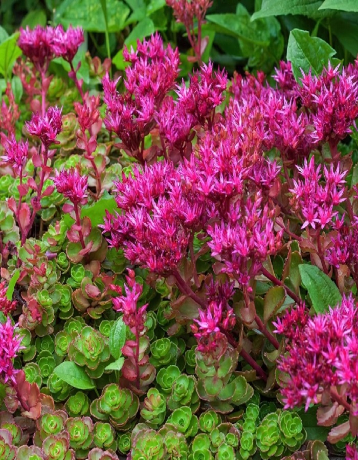 ОписаниеОчиток ложный «Dragon’s Blood» (в переводе «Кровь Дракона») — низкорослый, стелющийся многолетник, принадлежащий к семейству Толстянковых . Он ценится за свои мясистые, сочные листья и яркое цветение. Листья: Мясистые, лопатчатые, расположенные супротивно. Летом имеют насыщенный зеленый цвет с бордовым оттенком, осенью приобретают интенсивный багряный или темно-красный цвет, особенно при понижении температуры.При выборе места для выращивания очитка следует помнить, что почти все его сорта любят солнечные открытые участки. Чтобы многолетник не снижал со временем своих декоративных качеств, рекомендуется обеспечить ему дренаж из кирпичной крошки или керамзита. Растение не переносит излишней влажности и застоя воды.Цветы (соцветия)Цветки небольшие, ярко-желтые с красными тычинками, образуют плотные соцветия на концах стеблей. Цветение очень обильное.Цветение июль – август.ЗимостойкостьЗимостойкость высокая, до -34° сВозраст саженца1 годУсловия выращиванияХорошо переносит низкие температуры.