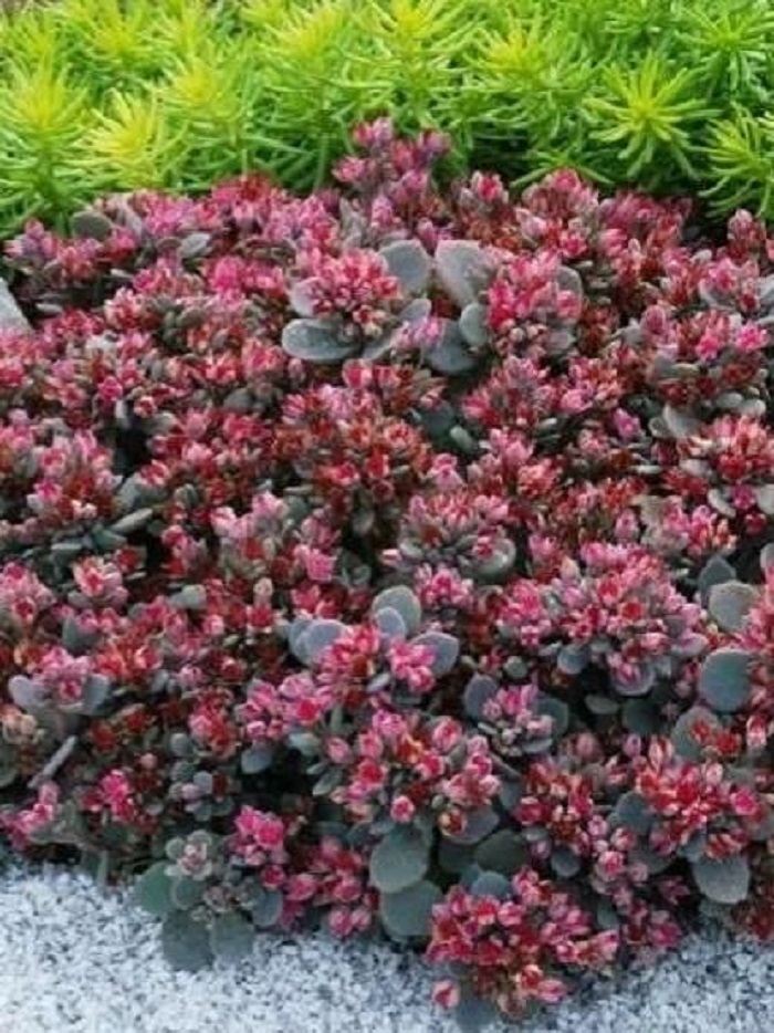 ПрименениеСтелющийся многолетник высотой 30-40 см. Сине-зеленые листья постепенно переходят в пурпурно-фиолетовые. Цвеки розовые, собраны в зонтики. Цветет обильно с августа по октябрь.ЗимостойкостьЗимостойкость высокая, до -34° сВозраст саженца1 годУсловия выращиванияОдно из основных условий выращивания седума в саду - солнечное расположение. При нехватке солнечного света очитки вытягиваются и теряют декоративность. Седум предпочитает суглинки или песчаные почвы, однако будет расти на любом грунте при условии его хорошей водопроницаемости. Седумы исключительно засухоустойчивы и морозоустойчивы. Очиток фактически не нуждается в дополнительных удобрениях, многие седумы особенно роскошно цветут на бедных почвах.