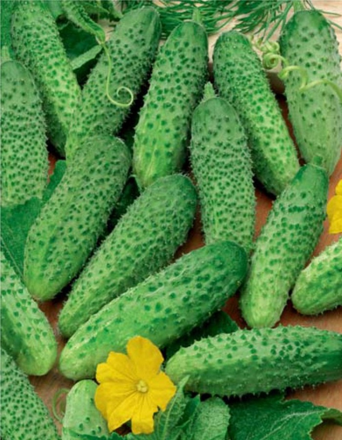 Суперпопулярный. Раннеспелый (38-44 дня) партенокарпический гибрид женского типа цветения, универсального использования для открытого грунта и пленочных теплиц. Плод корнишонного типа, цилиндрический, крупнобугорчатый, темно-зеленый, длиной 8-9 см, весом до 130 г. Вкусовые качества отличные.Ценность гибрида: высокая урожайность, выравненность плодов, устойчивость к болезням и перепадам температур. Семена обработаны тирамом, перед посадкой не замачивать.