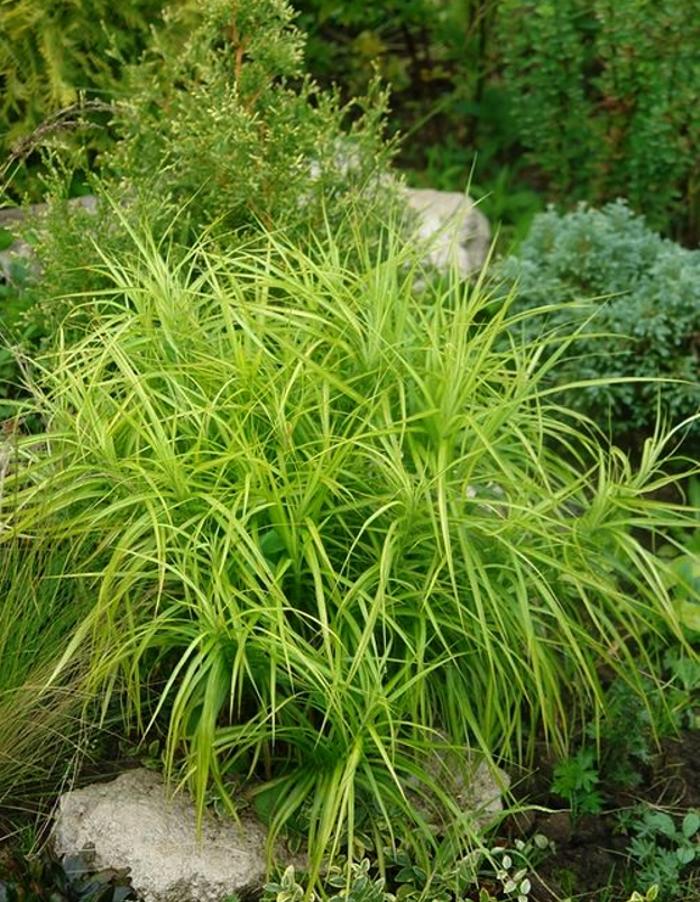ПрименениеОдно из лучших растений, долго украшающих сад, она декоративна даже зимой, так как не сбрасывает на зиму листья.Дерево (куст)Многолетняя корневищная трава с пучками узких листьев, расположенных на концах прямостоячих побегов, которые образуют рыхлую кочку, напоминающую миниатюрную пальму, за что растение и получило свое название. Типичный цвет листвы светло-зеленый.ЛистьяЛиства, расположенная пучками на концах прямостоячих побегов, создает экзотический эффект папируса. Многочисленные узкие, заостренные листья отходят от слабых стеблей, вырастающих до 60-80 см высоты. Из-за своеобразного расположения листьев ее и называют пальмовидной осокой. Образует слегка расползающуюся кочку.Цветы (соцветия)Цветение в июне - июле не представляет особого интереса.ЗимостойкостьЗимостойкость высокая, до -40° сВозраст саженца1 годУсловия выращиванияХорошо растет на сырых, болотистых местах. Не агрессивна. Может расти как на прямом солнце, так и в полутени. Растению требуется достаточная влажность почвы.