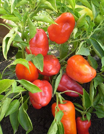 Продуктивный раннеспелый (105-115 дней) сорт для выращивания в открытом грунте. Куст штамбовый высотой 40-55см, среднеоблиственный. Плоды очень крупные, увесистые, массой до 120 г, конусовидной формы с тупой вершиной, в технической спелости желто-зелёные, в биологической – рубиновые. Толщина стенки 0,6-0,7см. Мякоть сочная, сладкая. Используют в свежем виде, для заморозки, консервирования, маринования и сушки. Ценность сорта: суперурожайность, выравненность и мясистость плодов, транспортабельность, устойчивость к капризам природы, сильный иммунитет к грибковым заболеваниям.