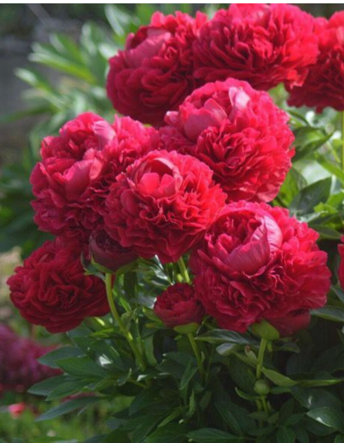 Пион Кэрол – это межвидовой сорт с яркими махровыми цветами. Славится необычным ярко-красным цветением. По форме бутона они очень напоминают розы. Интересным свойством является складчатая форма лепестков в бутоне: они образуют как бы несколько макушек.