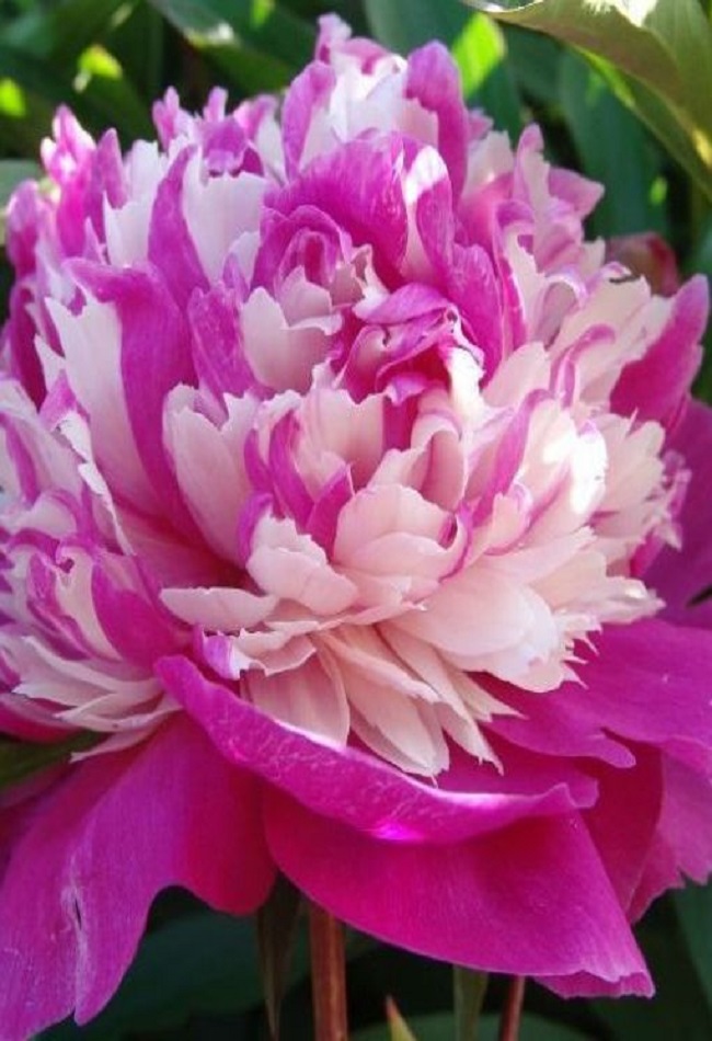 Пион Селебрити — травянистое растение с прочными стеблями и мощными мясистыми корнями, достигает высоты 95–100 см. Листья крупные, очередные, трижды тройчатые, темно зеленые, блестящие. Цветки махровые, малиновые с белыми вкраплениями, слегка душистые, диаметром до 18 см. Цветет в июне — июле.
