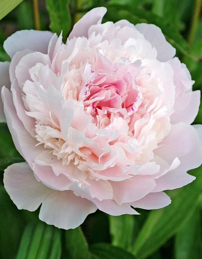 Пион Печер – травянистое растение с прочными стеблями и мощными мясистыми корнями достигает высоты 90см. Листья крупные, очередные, трижды тройчатые, темно зеленые, блестящие. Цветки махровые, белые с розовым оттенком, слегка душистые, диаметром 18 см. Цветет в июне – июле. Используют в одиночных и смешанных посадках, группами среди газона. Шикарно смотрится в букетах и композициях.