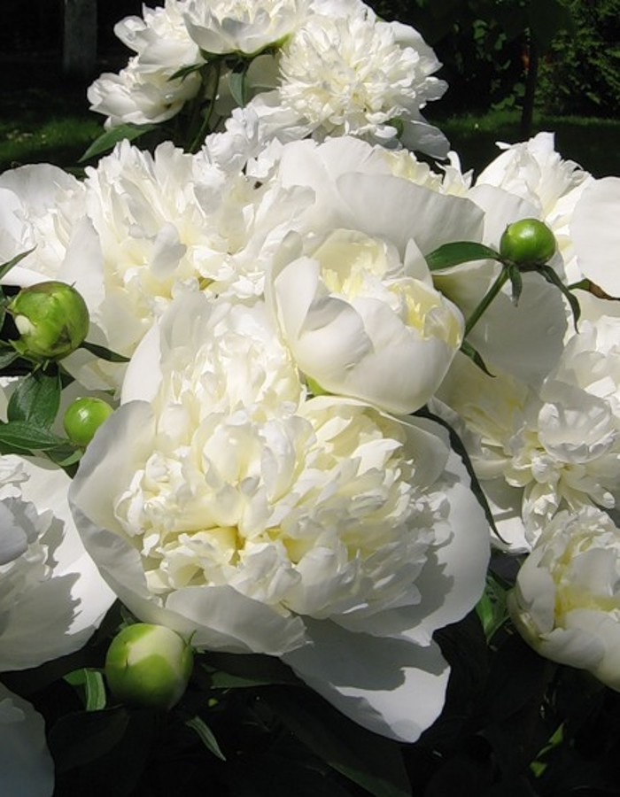 Пион Лаура Десерт– травянистое растение с прочными стеблями и мощными мясистыми корнями, достигает высоты 85см. Листья крупные, очередные, трижды тройчатые, темно зеленые, блестящие. Цветки махровые, белые с желтоватым оттенком, слегка душистые, диаметром 15см. Цветет в июне – июле.