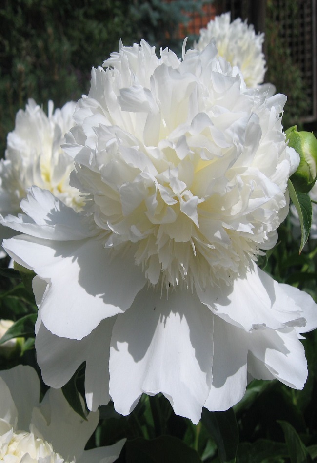 Пион Чарльз Уайт – травянистое растение с прочными стеблями и мощными мясистыми корнями достигает высоты 90см. Листья крупные, очередные, трижды тройчатые, темно зеленые, блестящие. Цветки махровые, кремово-белые, душистые, диаметром до 18см. Цветет в июне – июле. Используют в одиночных и смешанных посадках, группами среди газона. Шикарно смотрится в букетах и композициях.