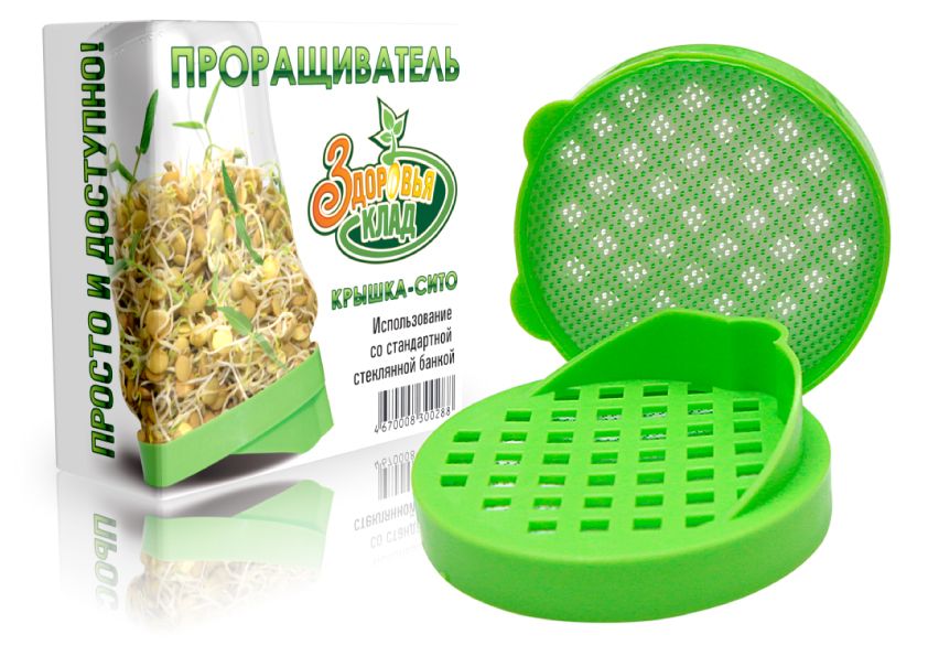 Проращиватель «Здоровья КЛАД» (Крышка-сито) - это простое и доступное каждому решение для комфортного проращивания при помощи стандартной стеклянной банки. Отверстия в крышке позволяют легко промывать содержимое банки и открывают доступ воздуху в банку. Внутренняя сетка не позволяет при промывании просачиваться в раковину даже самым мелким семенам. А боковой выступ позволяет ставить банку на горизонтальную поверхность под углом так, чтобы проникающий снизу воздух создавал внутри банки тепличный эффект.