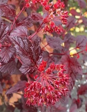 ПрименениеИспользуется для живых изгородей, в качестве солитера, для групповых посадок.КустКуст состоит из 2-3 десятков поникающих ветвей, растущих из центра и образующих полусферическую крону. Высота кустарника достигает 3 мЛистьяЛистья, расположенные попарно, имеют трех- или пятилопастную форму. Их длина достигает 4-5 см. Окраска растений на солнечных участках красно-фиолетовая, у кустов, растущих в тени, – пурпурно-зеленая. Осенью цвет листьев меняется на золотистый.Цветы/соцветияДиаметр цветков 1,5-2 см, соцветий – до 5 см. В зависимости от климатических условий, начало цветения приходится на конец июня и начало июля.ЗимостойкостьЗимостойкость средняя, до -29 °C.Возраст саженца1 годУсловия выращиванияСветолюбив, выносит полутень. В затененных условиях листья зеленеют. Нетребователен к почвенным условиям. Засухоустойчив. Зимостойкий сорт.