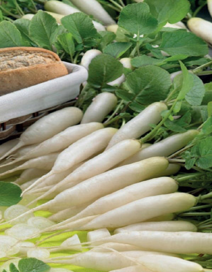 Высокоурожайный среднеспелый (25-30 дней) сорт. Корнеплоды сосульковидные, выровненные, молочно-сливочного цвета, длиной 9-12см, массой 35-40 г, на 2/3 погружены в почву. Мякоть белая, нежная, с легкой остринкой, сочная, очень вкусная. Предназначен для использования в свежем виде, подходит для приготовления окрошек, салатов, летних супов. Ценность сорта: дружное формирование и выравненность корнеплодов, отличные вкусовые качества, устойчивость к засухе и дряблению, генетически защищён от стеблевания.