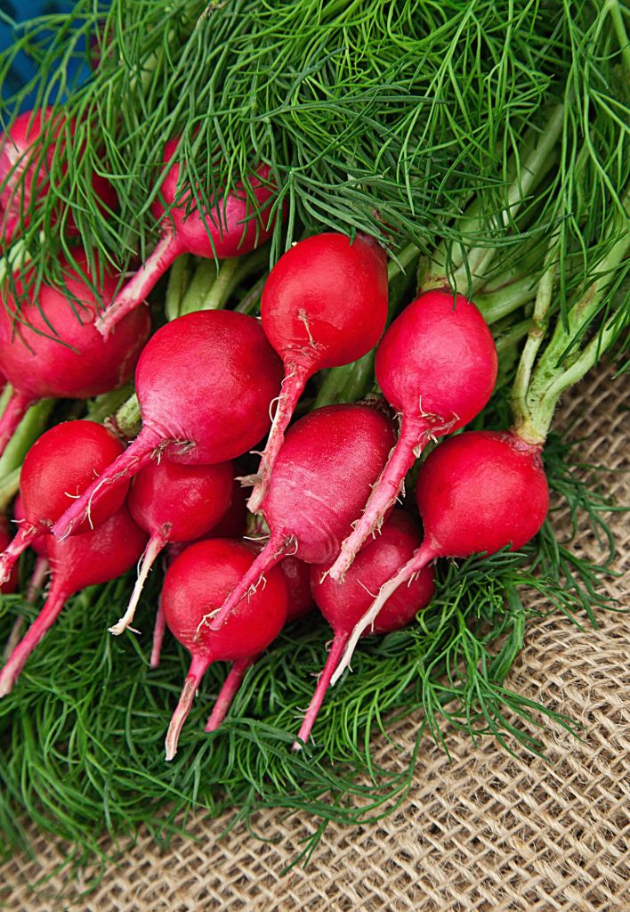 Мякоть белая, сочная, без горечи. Скороспелый (21-25 дней) сорт. Корнеплод округлый, темно-красный, длиной 4 см, диаметром 3-4 см, массой 18-20 г. Мякоть белая, плотная, сочная, без горечи. Корнеплод полностью погружен в почву.