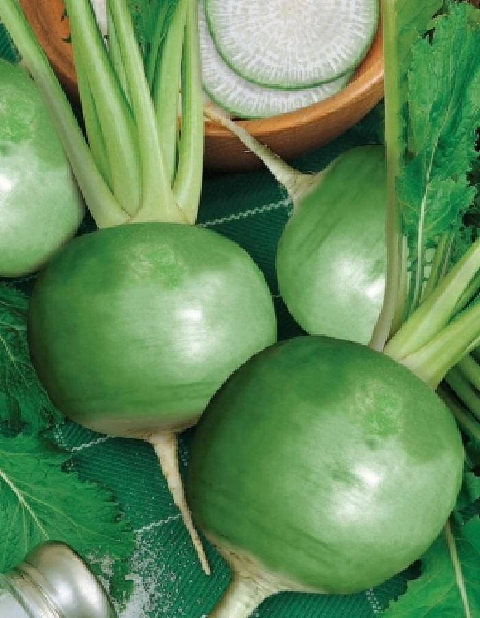 Очень урожайный среднеспелый сорт для потребления в свежем виде. Корнеплоды удлиненно-округлые, гладкие, мятно-зеленые с белым кончиком, длиной 10-12см, массой 250-400 г. Мякоть белая, сочная, хрустящая, без горечи. Ценность сорта: холодостойкость, жаростойкость, отличные вкусовые качества, содержит большое количество витаминов, длительное хранение.