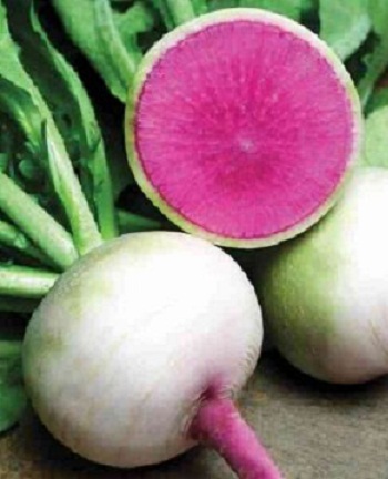 Среднеспелый (65-75 дней) сорт для использования в свежем виде и непродолжительного зимнего хранения. Корнеплод округлый, белый с зеленоватым верхом, массой 100-220 г. Мякоть красная, нежная, сочная, слабоострая, отличных вкусовых качеств. Плоды начинают собирать с веса около 200 г. (при снижении нормы высева можно дорастить до 0,8 – 1,0 кг без потери качества). После уборки они могут храниться в течение 2-4 месяцев. Рекомендуемая норма высева 350 – 500 тыс. на га.