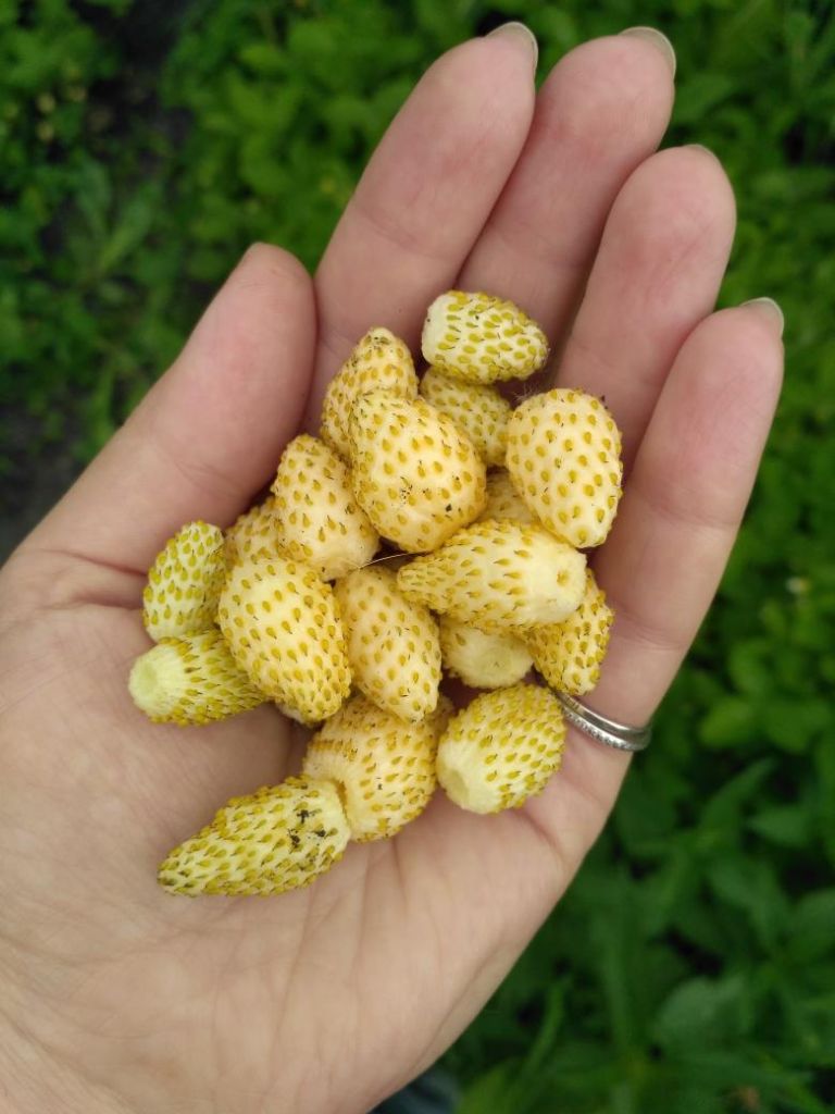 Высокоурожайный неприхотливый сорт земляники с оригинальной золотисто-желтой окраской. Ягоды очень вкусные, сладкие и ароматные, обладают повышенным содержанием витаминов и микроэлементов. Незаменимы для потребления в свежем виде и приготовления оригинальных десертов. Плодоношение обильное и длительное, с июня по октябрь.