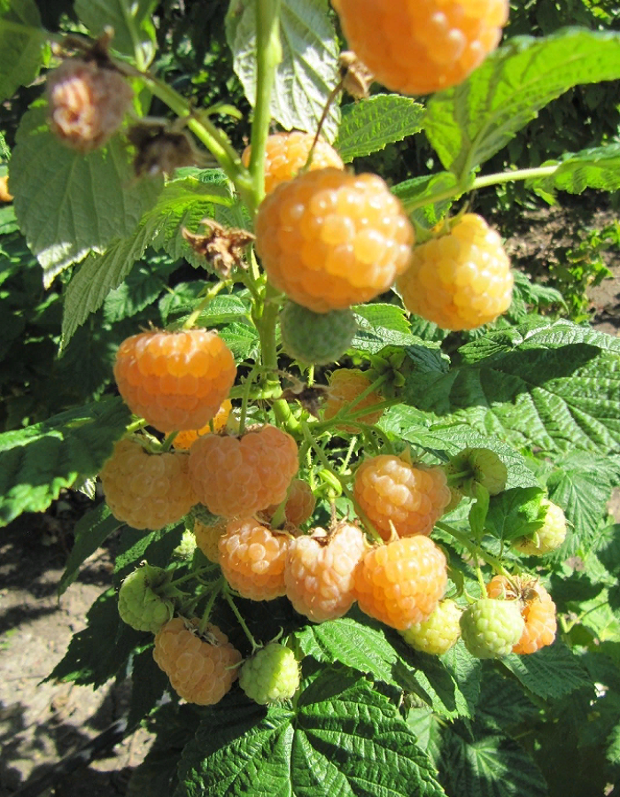 ПрименениеЯгоды часто употребляют в пищу в свежем виде, закрутках и компостах.Срок созреванияСредний срок.Дерево(куст)Малина имеет сильнорослые и прямостоячие кусты высотой 150-170 см. На кустах располагаются шиповатые побеги, покрытые короткими, прямыми и жесткими шипами. Листва отличается легкой морщинистостью, имеет классический ярко-зеленый колер.Плоды(ягоды)Имеет яркие золотисто-желтые ягоды. Форма у них обычно округлая, сферическая. Размер крупный, вес в большинстве случаев составляет 5-7 гр, но порой достигает и 10 гр. Вкус сладкий с четкой кислинкой, весьма приятный. Мякоть твердая, но на вкусовые качества это не влияет. В среднем с одного куста садоводы собирают 3 кг ягод, но показатель может быть увеличен путем качественной агротехники.СамоплодностьСамоплодный сортВозраст саженца1 годЗимостойкостьЗимостойкость до - 30Условия выращиванияне рекомендуют к выращиванию в регионах, где наблюдается постоянная засуха. Такой климат приведет к тому, что плоды потеряют сахар и станут совсем кислыми. Побеги будут склоняться к земле. Чтобы плоды не лежали прямо на грунте, обязательно подвязывайте побеги.