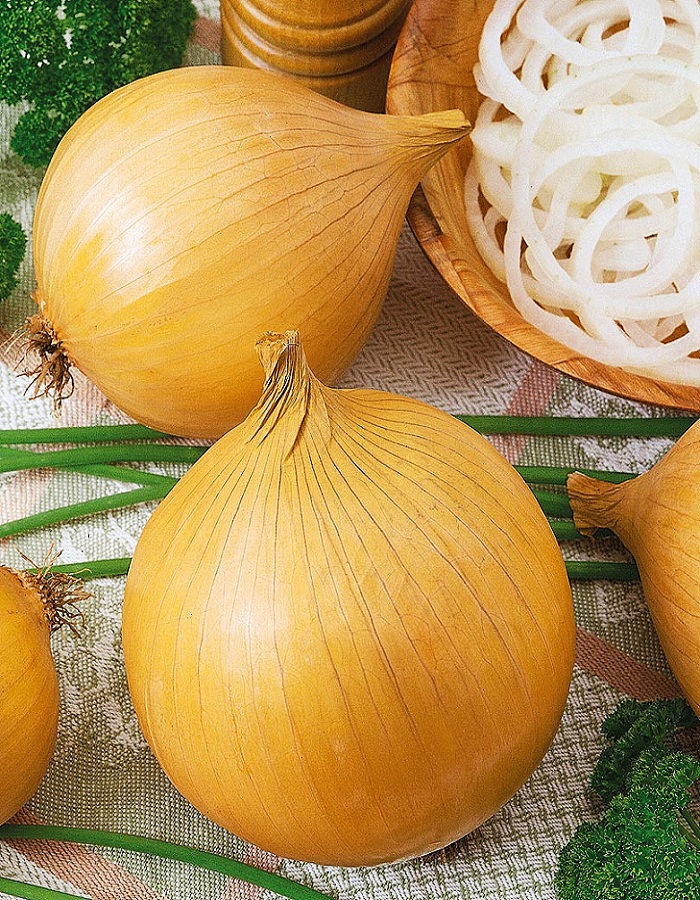 Скороспелый сорт, в однолетней культуре из семян 90-119 дней, в двулетней культуре из севка 75-80 дней. Луковица плоская и плоско-округлая, с желтыми сухими чешуями, и белыми сочными чешуями, среднеплотная, малогнездная и малозачатковая, массой 45-75 г, полуострого вкуса.Стабильная урожайность, высокая вызреваемость и лежкость. Рекомендуется для выращивания, как в однолетней культуре из семян, так и в двулетней культуры, через севок. Предназначен для употребления в свежем виде, домашней кулинарии и длительного хранения.