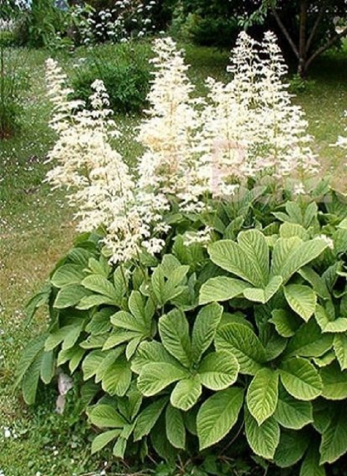 ПрименениеМощный, архитектурный многолетник для тенистых и полутенистых участков сада. Растение формирует крупный, эффектный куст с выразственной листвой, которая весной имеет бронзовый оттенок, а к осени приобретает медно-красные тона. Во время цветения над массивом листьев поднимаются высокие метельчатые соцветия чисто-белого цвета, придавая посадкам лёгкость и благородство.