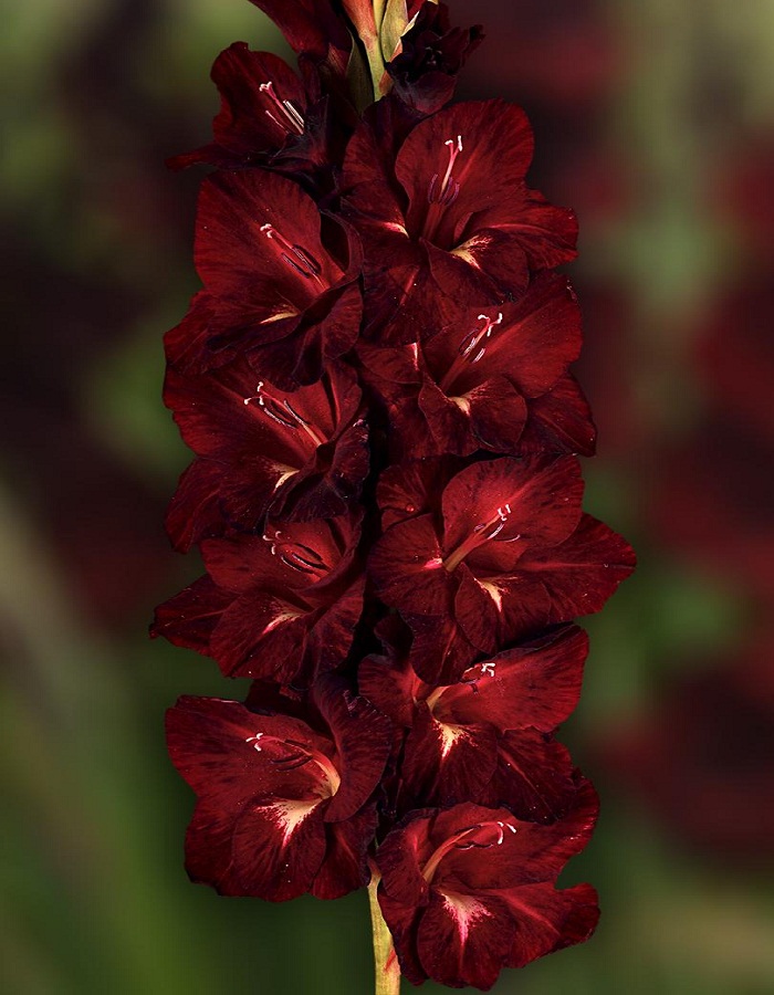 Чёрно-красный с контрастной белой стрелкой. Цветки размером более 14 см