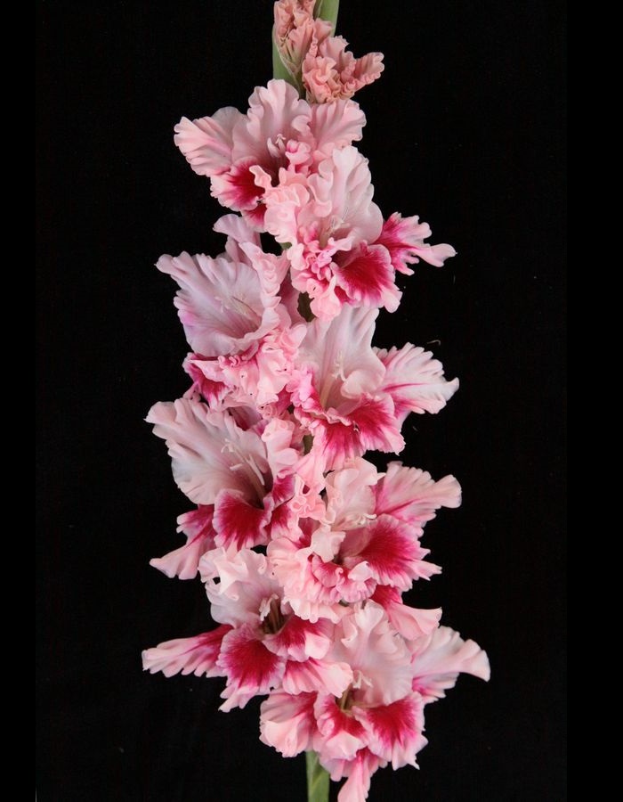 У гладиолуса Дверь в Лето- крупный, плотно-уложенный колос. Окраска лавандово-розовая с малиновыми пятнами на нижних лепестках. Край лепестков складчатый. Огромные цветки из прозрачного розового шёлка завораживают и манят. По центрам нижних лепестков растекаются яркие малиновые пятна, придающие соцветию дополнительный объем. Для несравненно нежных романтических букетов. Высота 140 см, диаметр цветка 15 см.