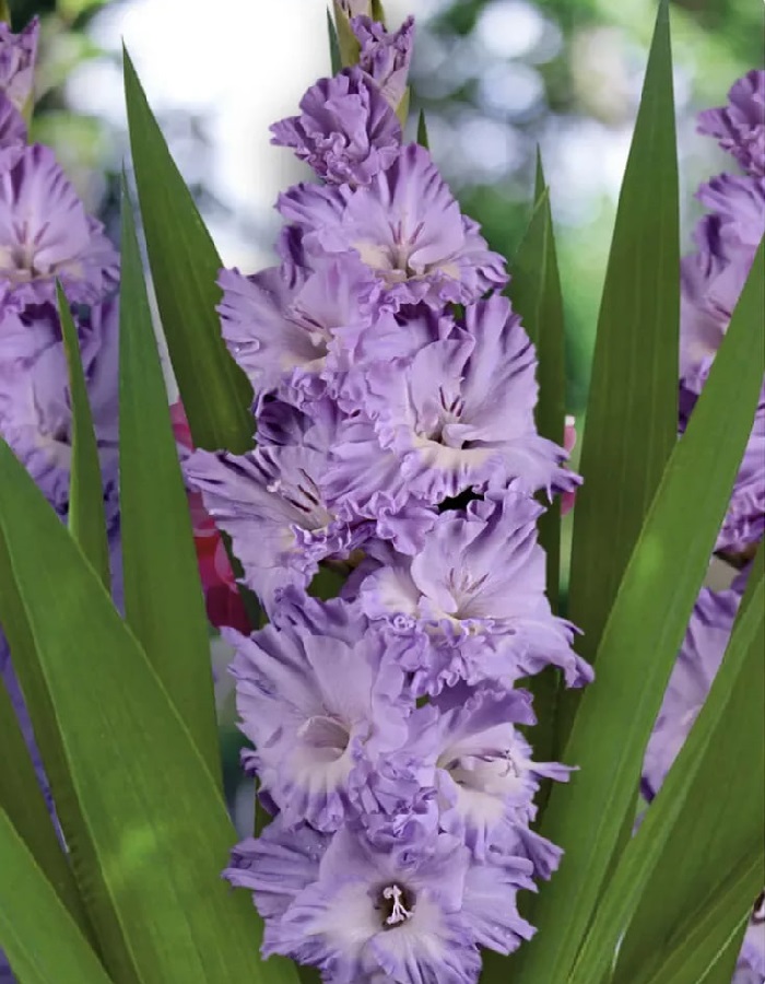 Голубая Метель - высота растения 130 см. Цветок небесно-голубой с размытым светлым горлом и белым нижним лепестком. Сильная гофрировка с защипами в горле. Цветки диаметром 12,5 см. Соцветие высотой 65 см, плотное, с поочередной укладкой цветов. Особенностью сорта является то, что на его соцветии одновременно раскрываются практически все бутоны. Из 19-ти сформированных бутонов на кусте раскрывается сразу 17. Красиво смотрится в букетах в окружении коралловых и дымчатых сортов. Первый разбор. Гладиолусы хорошо растут и цветут на солнечных, защищенных от ветра и дренированных участках. Оптимальными следует считать плодородные, структурированные, легкие суглинистые, супесчаные почвы или черноземы, со слабокислой реакцией рН 6,5-6,8.