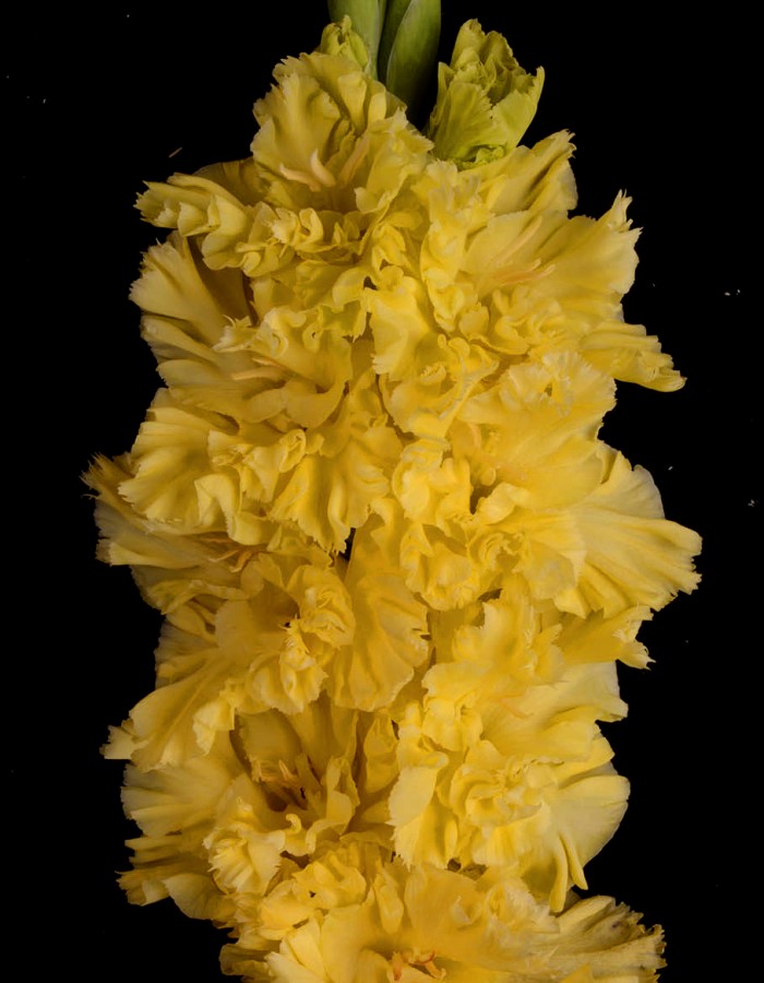 Кружевные взъерошенные цветки из сусального золота распускаются в плотных колосьях из 10 шт. и более. Насыщенные золотые оттенки сохраняются до конца периода цветения. Ростовые качества на уровне лучших сортов.