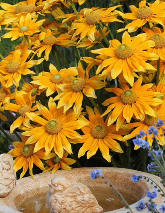Богатое цветение до заморозков . Неприхотливый однолетник высотой 80см. Побеги опушенные, с крупными прикорневыми листьями. Соцветия крупные, диаметром до 10см, золотисто-желтые с черной серединой. Цветение продолжительное с июля до сентября. Растение свето- и теплолюбивое, жаро- и засухоустойчивое. Используют для одиночных и групповых посадок, миксбордеров и на срезку.Агротехника.Посев в открытый грунт в середине апреля — начале мая, расстояние между взрослыми растениями должно составлять 30–40 см. Дальнейший уход заключается в своевременных поливах, рыхлениях и подкормках.