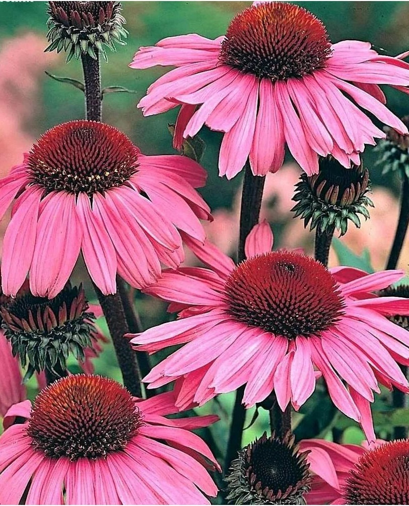 ОписаниеРастение высотой 60-90 см с прямыми шероховатыми буровато-зелеными стеблями. Прикорневые листья собраны в розетку, стеблевые – ланцетные, шероховатые. Крупные соцветия-корзинки с поникшими темно-розовыми лепестками. Цветет август-сентябрь. Используют для отдельных групп на газоне, в сочетании с низкорослыми многолетниками, около деревьев и срезки.