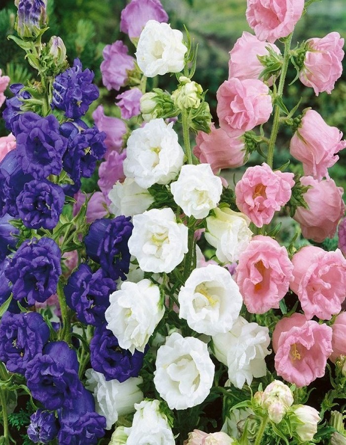 Эффектные, крупные соцветия. Куст пирамидальной формы, высотой 90-120 см. Крупные махровые цветы разнообразной окраски, диаметром 3-8 см собраны в пирамидальные соцветия. Растение предпочитает солнечные места, защищенные от ветра. Цветет в июне-июле на второй год после посева. Используют в различных цветочных композициях и на срезку.
