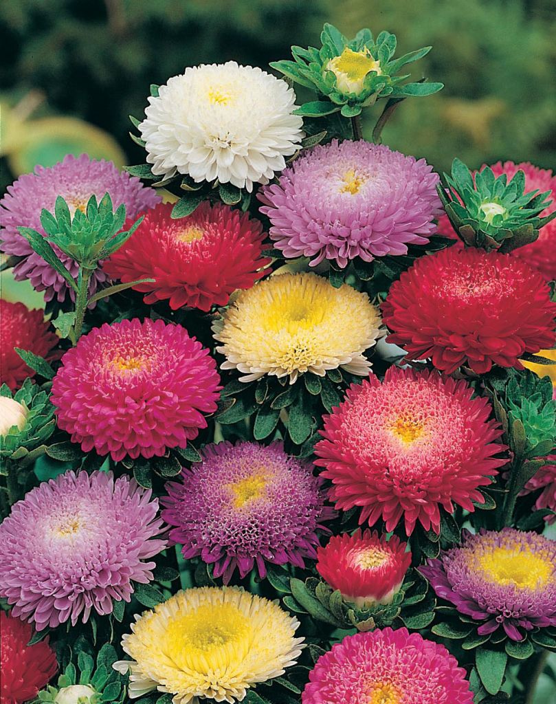 Сочная, яркая смесь.Растение компактное, сильноветвистое, высотой до 65 см. Соцветия полусферические, диаметром 12 см, махровые, разнообразной окраски. Центр заполнен длинными трубчатыми цветками, собранными очень плотно и окрашенными так же, как язычковые. Цветет август- сентябрь. Предпочитает солнечные места. Используют для посадки в цветниках, на рабатках и на срезку.