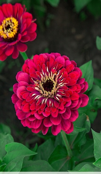 Популярный сорт. Однолетнее растение высотой до 90см. Соцветия крупные, георгиновидные, малиново-розового цвета, диаметром до 14см. Предпочитает солнечные места. Цветет с июля по сентябрь. Используют для цветников, клумб, рабаток и срезки.Агротехника.Посев на рассаду в апреле на глубину 1 см. Всходы появляются через 4-6 дней. Рассаду высаживают в начале июня, выдерживая расстояние 25-30 см. Дальнейший уход заключается в своевременных поливах, рыхлениях и подкормках.