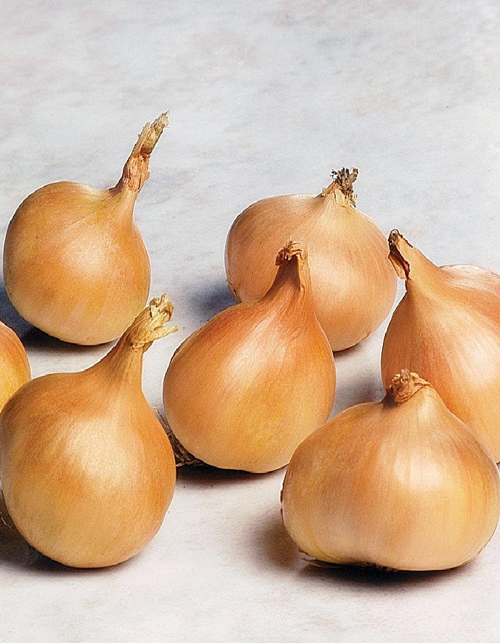 Среднеранний (80-85 дней) полуострый многозачатковый сорт. Луковицы лука-севка небольшие, средней массой 35-70г, округлой формы с очень прочной кожурой красивого жёлтого цвета с коричневатым оттенком. Растут гнездом от 4 до 10 штук. Размер созревшей луковицы может достигать в диаметре до 10см. На 25-30 день уже можно срезать зелень. Лист тёмно-зелёный с сильным восковым налётом, высотой до 30-35см.