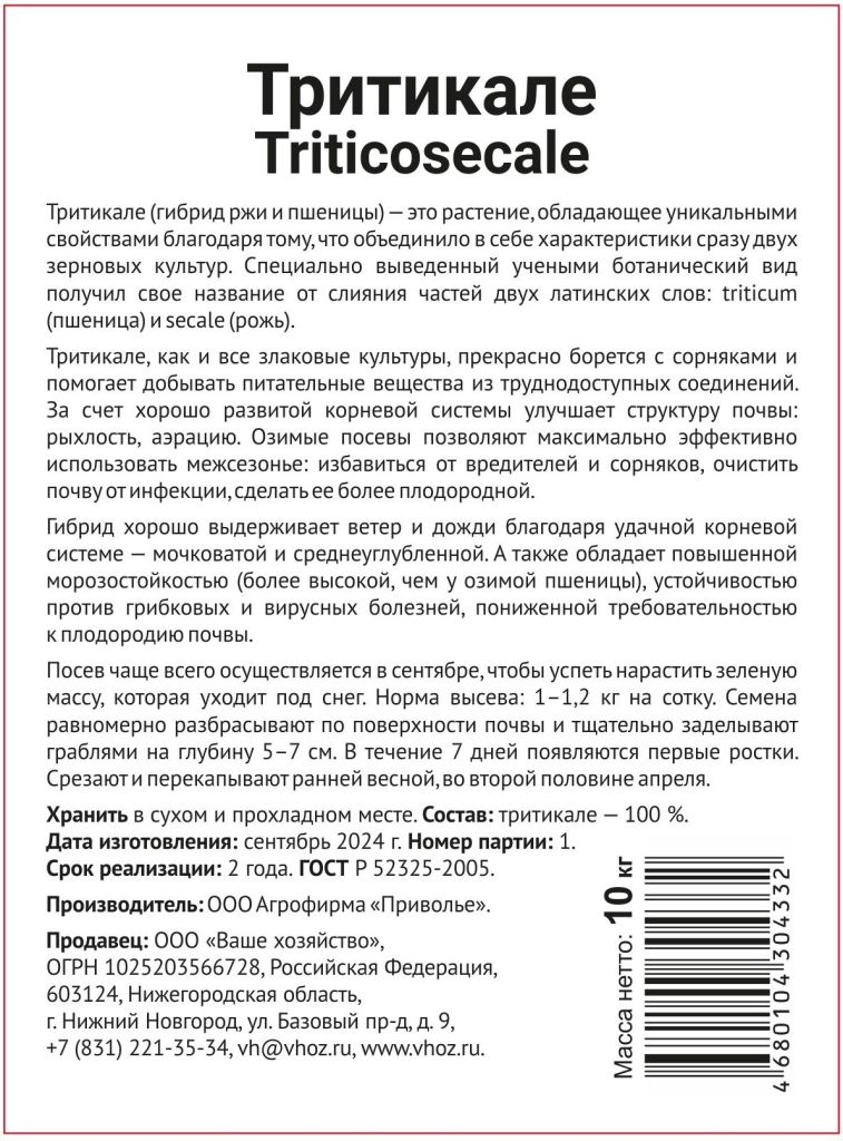 Тритикале, как и все злаковые культуры, прекрасно борется с сорняками и помогает добывать питательные вещества из труднодоступных соединений. За счет хорошо развитой корневой системы улучшает структуру почвы: рыхлость, аэрацию. Озимые посевы позволяют максимально эффективно использовать межсезонье: избавиться от вредителей и сорняков, очистить почву от инфекции, сделать ее более плодородной.