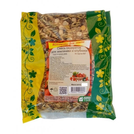 Состав смеси семян: вика 30%, чечевица 20%, овес 20%, горчица 15%, редька 15%.