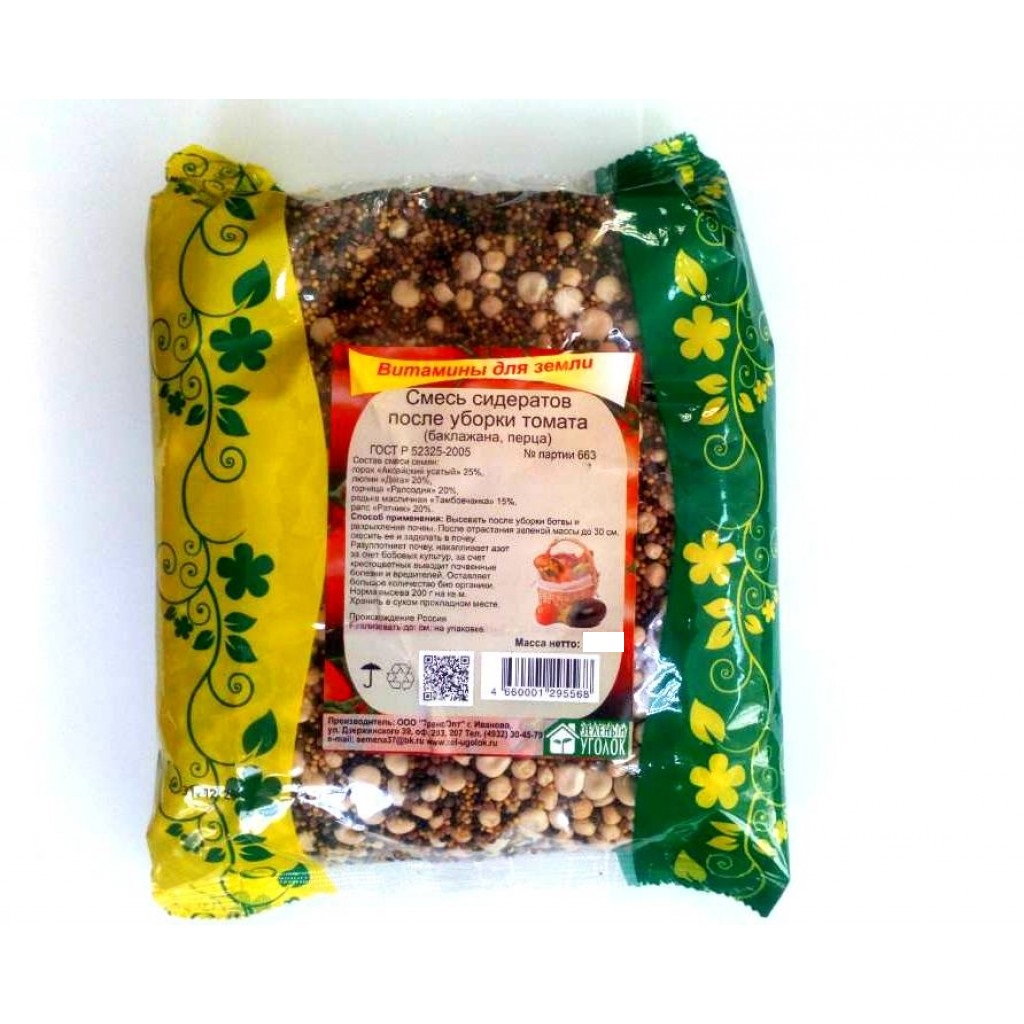 Способ применения: Высевать после уборки ботвы и разрыхления почвы. После отрастания зеленой массы до 30 см. скосить ее и заделать в почву. Разуплотняет почву, накапливает азот за счет бобовых культур, за счет крестоцветных выводит почвенные болезни и вредителей. Оставляет большое количество био органики.