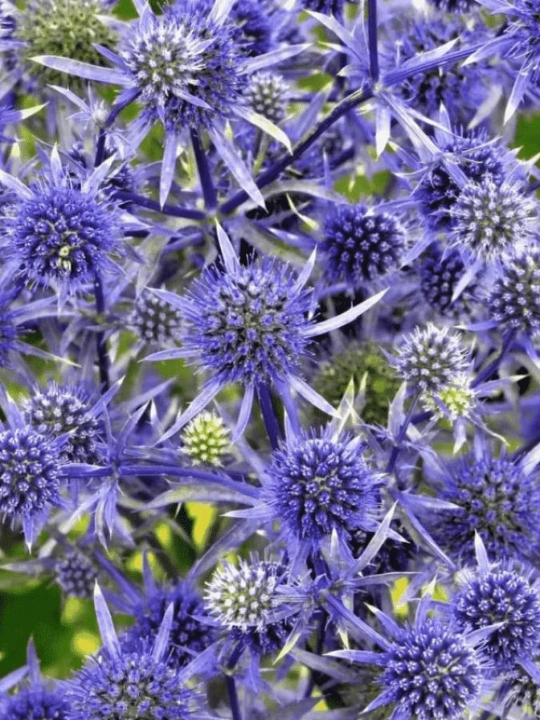 ПрименениеОтличается голубоватыми цветками, собранными в мелкие соцветия яйцевидной формы. Многолетнее травянистое растение высотой до 100 см . Стебли в верхней части ветвистые, синеватые. Листья жесткие, тонкие, кожистые, верхние стеблевые — трех- пятираздельные. Цветки голубые или синие, собраны в головчатое соцветие яйцевидной формы до 2 см в диаметре. Листочки обертки синие, линейные, шиловидно-зубчатые. Цветет в июле 35-40 дней, плодоносит в августе.ЗимостойкостьЗимостойкость высокая, до -40° сВозраст саженца1 годУсловия выращиванияПочву предпочитает питательную, богатую гумусом, рыхлую, влажную, обязательно дренированную.