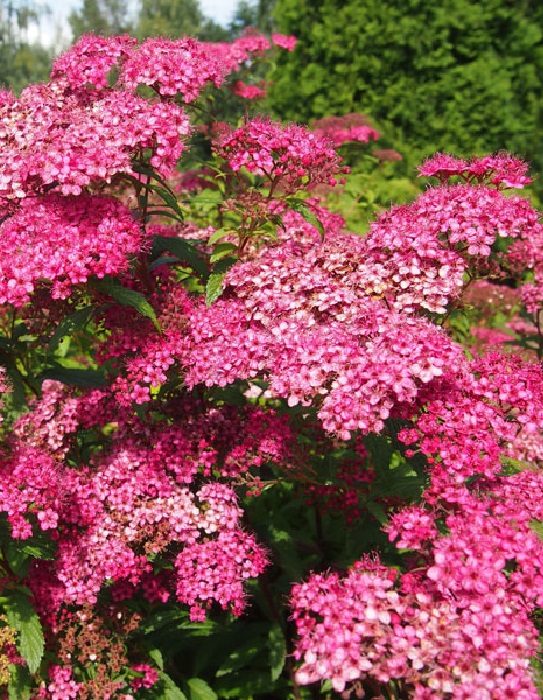 Применение,особенностиИспользуется для одиночных и групповых посадок, бордюров кустарников.КустКустарник высотой до 120 см. Компактный декоративно-лиственный и при этом красивоцветущий кустарник.ЛистьяПри распускании молодые листья имеют пурпурный оттенок, который меняется к началу лета на темно-зеленый.Цветы/соцветияВ середине июля сорт Фробели, как и все японские спиреи, зацветает плотными щитковидными соцветиями.Спирею Фробели отличают их крупные размеры и насыщенная темно-розовая окраска. Период цветения продолжительный – до середины сентября, но и осенью декоративный эффект не снижается за счет приобретения листьями бронзово-красной расцветки.ЗимостойкостьЗимостойкость высокая, до -34°C.Возраст саженца1 годУсловия выращиванияСветолюбива, но выносит легкое затенение. Не требовательна к плодородию почвы.Морозостойкий сорт.